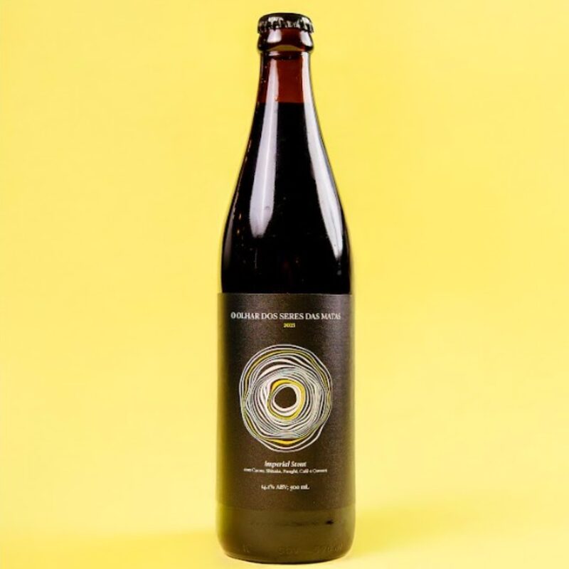 Imperial Stout com cacau belga, café, funghi, shiitake e cumaru (500ml) — 14,1% ABV.